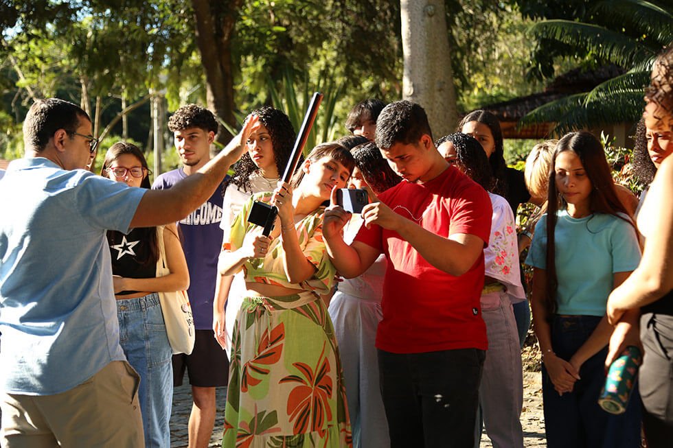 Os números exibidos no quadro ao lado ajudam a medir essa frente, mas o que eles mostram vai além da escala. O Instituto já alcançou mais de 90 mil pessoas em suas ações de educação ambiental, recebeu aproximadamente 150 mil visitantes e consolidou uma rede formativa que atravessa diferentes idades, repertórios e vínculos com a terra. O valor desse conjunto cresce justamente porque não se limita a um público único. Ele articula infância, juventude, capacitação técnica e circulação social do conhecimento.