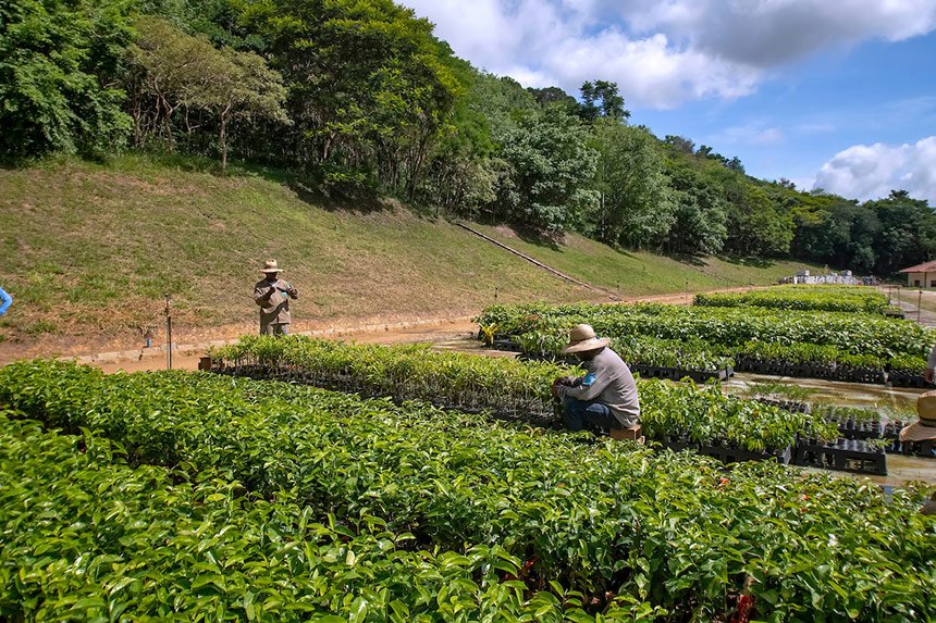 Essa base ganhou novo fôlego. Com apoio da Zurich Insurance Group, o Instituto iniciou a construção de um novo viveiro com capacidade projetada de até 2 milhões de mudas por ano e expandiu a área protegida com a aquisição das fazendas Maria Bonita, Vai e Volta e do Sítio Constância. O salto entre 500 mil e 2 milhões de mudas anuais expressa uma transição importante. A operação passa a se preparar para abastecer uma frente muito mais extensa de recuperação ambiental, com densidade suficiente para apoiar processos de outra magnitude.