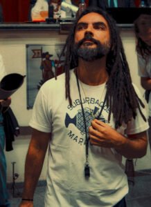 O encontro com o maracatu de baque virado tem a simplicidade dos acontecimentos que depois revelam uma força estrutural. Ele voltava de uma intervenção artística em Suzano quando, ao descer de uma kombi numa praça de Mogi, encontrou um ensaio do Maracatu Boigy. Deram-lhe um instrumento. A partir daquela tarde, passou a frequentar os encontros. Pouco depois, surgiria o Suburbaque.