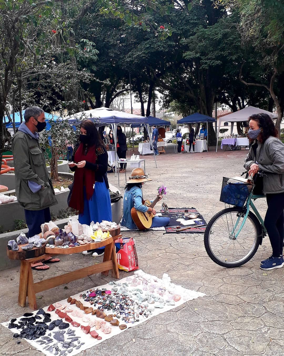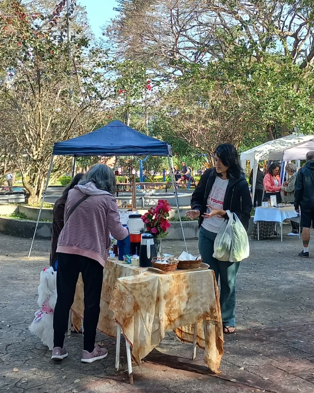 Ao redor das bancas, intervenções culturais espontâneas acontecem sem roteiro fixo: uma música que surge, uma conversa que vira roda, uma ação educativa ou ambiental que se forma a partir do interesse coletivo. Tudo se dá de maneira orgânica, sem excessos, sem espetáculo. A feira entende que cultura verdadeira não precisa gritar para existir porque se manifesta quando o espaço permite.